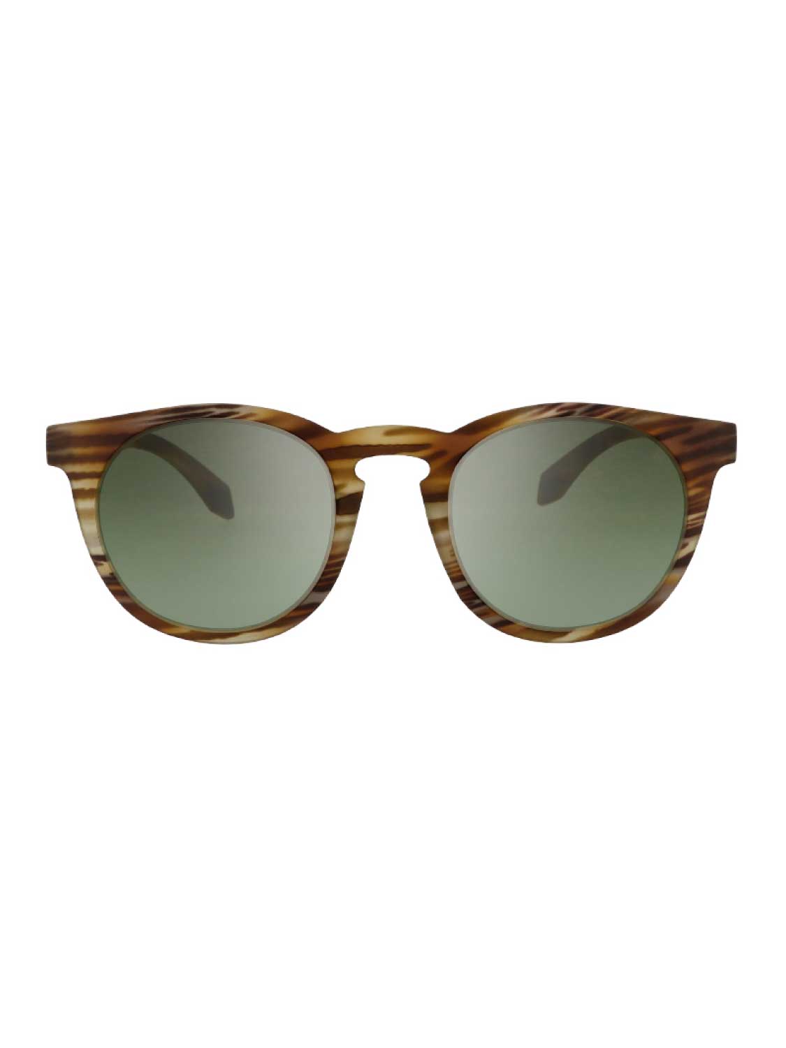 Unisex fashion sunglasses with brown zebra frame and green lenses.